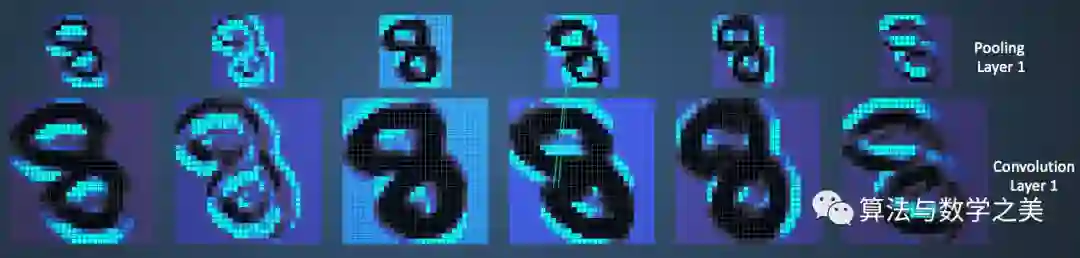 我们在下图中可以看到神经网络对于输入数字“8”的具体操作细节。请注意,图18中并未单独显示ReLU操作。