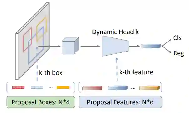 这组proposal features与proposal boxes提取出来的RoI feature做一对一的交互,从而使得RoI feature的特征更有利于定位和分类物体。