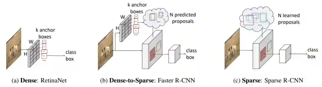 Sparse R-CNN可以看作是目标检测框架从dense到dense-to-sparse到sparse的一个方向拓展。