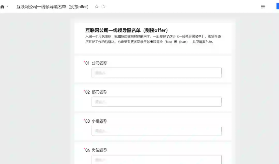 EXCEL本来是打工人的噩梦,现在成了打工人的救星。11月15日下午,一份名为《互联网公司一线领导黑名单(别接offer)》的在线文档,在各大群内开始传播。