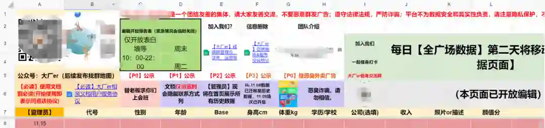 参考《大厂er相亲文档》《互联网公司一线领导黑名单(别接offer)》,或者是李佳琦、薇娅的表格,表头充当的是一个公告栏作用,就好像“古早版”的贴吧。