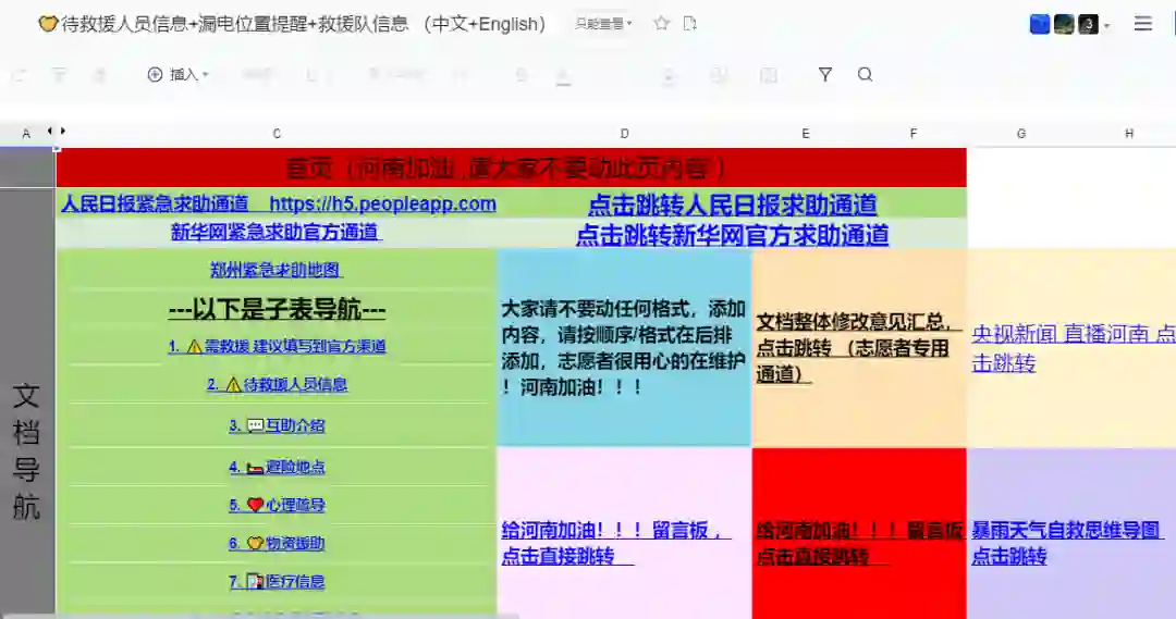 在线文档首次真正意义上的出圈,是在社会灾难当中,多个“救命文档”的诞生,成了信息洪流中的“方舟”。
