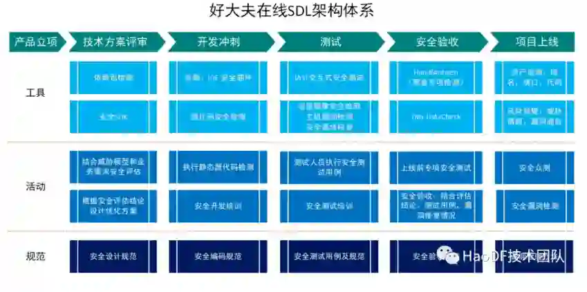 根据Verizon(威瑞森)发布的《2021年数据泄露调查报告》来看,Web应用攻击仍然是数据泄露的最常见手段。好大夫安全团队在应用安全方面持续做了实践尝试,结合好大夫项目管理流程及研发模式,打造了好大夫的SDL架构体系。从管理规范、安全活动、安全工具等几方面来提升安全工程能力,贯穿于项目开发流程中。