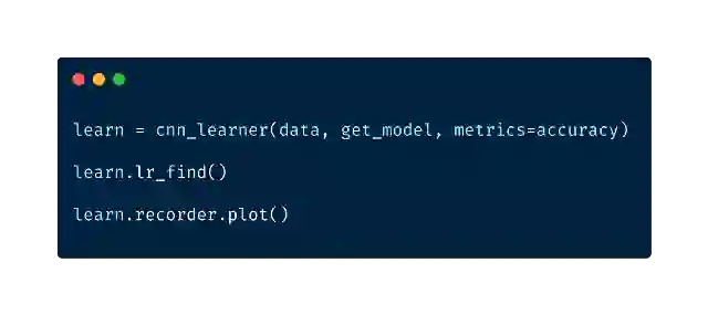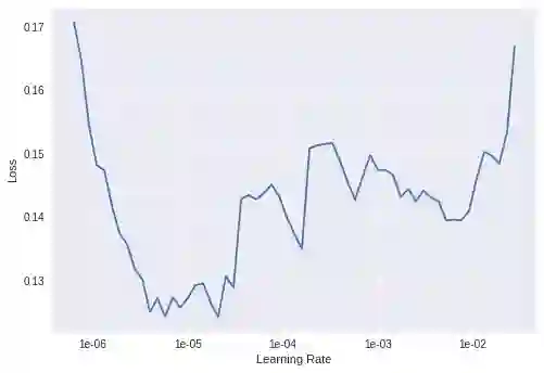 学习率是训练神经网络中最重要的超参数之一。fastai有一种方法来找出合适的初始学习速率。这个技术被称作循环学习率,我们用较低的学习率进行试验,并以指数形式增加,记录整个过程的损失。然后我们根据学习率绘制损失曲线,并选择损失值最陡峭处的学习率。