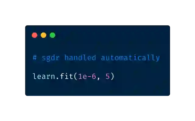 这个库还为我们自动的处理带有重新启动的随机梯度下降(SGDR)。在SGDR中,学习率在每次迭代开始时会重新设置为原始选择的数值,这些数值会随着迭代减小,就像余弦退火一样。这么做的主要收益是,由于学习率在每次迭代的开始可以重置,因此学习器能够跳出局部极小值或鞍点。