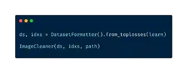 fast.ai提供了一个方便的插件“图像清理器插件”,它允许你为自己的模型清理和准备数据。图像清理器可以清洗不属于你数据集的图像。它在一行中呈现图像,使你有机会在文件系统中删除文件。