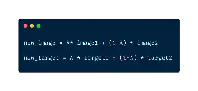混合增强是一种通过对已有的两幅图像进行加权线性插值,来形成新图像的增强方法。我们取两张图像,然后使用这些图像的张量进行线性组合。