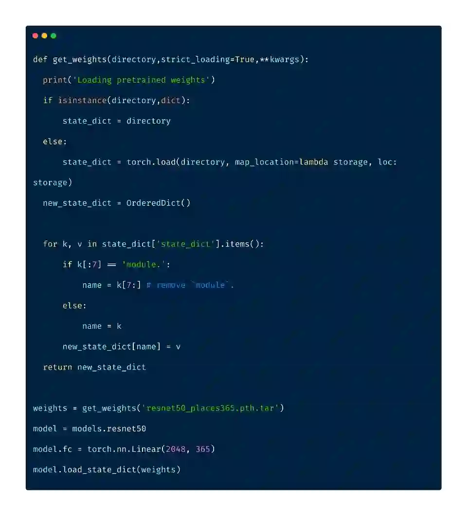 这个模型的权重在“pytorch weights”中提供。下面使用的实用函数帮助我们正确地将数据加载到fastai的CNN学习器中。