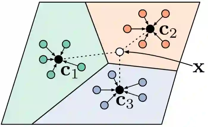 原型网络不将测试样本与所有训练样本进行比较,而是将测试样本与类原型(或平均类嵌入)进行比较。其关键假设是对于每个类别,存在一个嵌入,簇样本的表示是分布在这个原型的嵌入cₖ的周围的。在他们的论文中,证明了它的性能优于匹配网络。