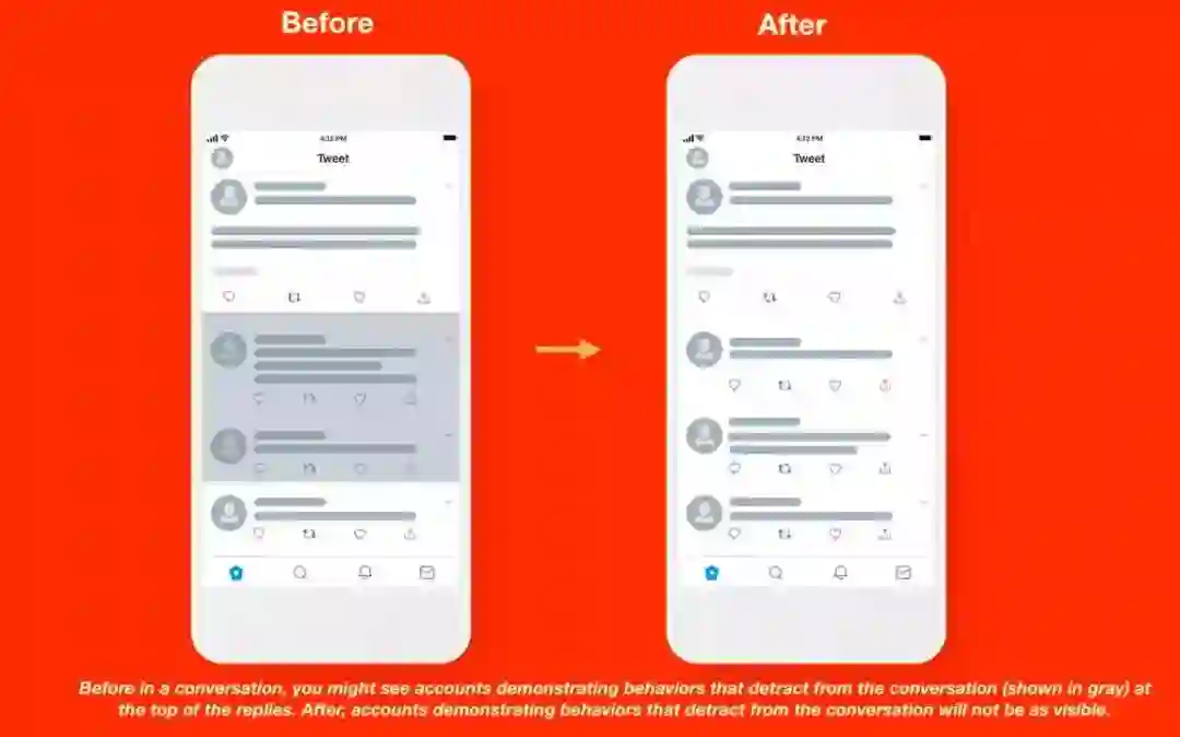 即使这条评论可能是侮辱性言论,其他用户依然有机会看到它,只是步骤多了一步。据 Twitter 表示,采用新算法之后,评论区的辱骂数量减少了 8%。
