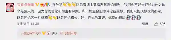 对这则策略大为不满的多是“底层用户”,他们的利益受损点在于“失去了在营销号/大 V 微博下面任意发言的权利”,这其中包括控评粉丝。除了个人恩怨观点冲突类,还有一大部分用户担忧的点在于,如果有博主造谣骗人,普通用户到评论区辟谣都成了困难。