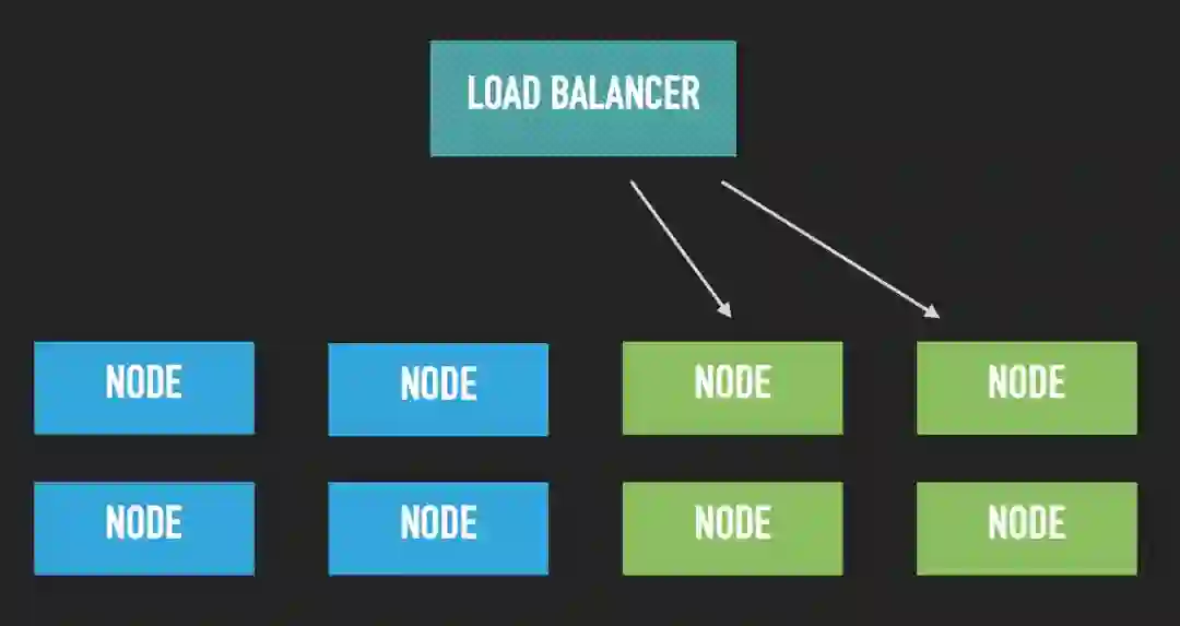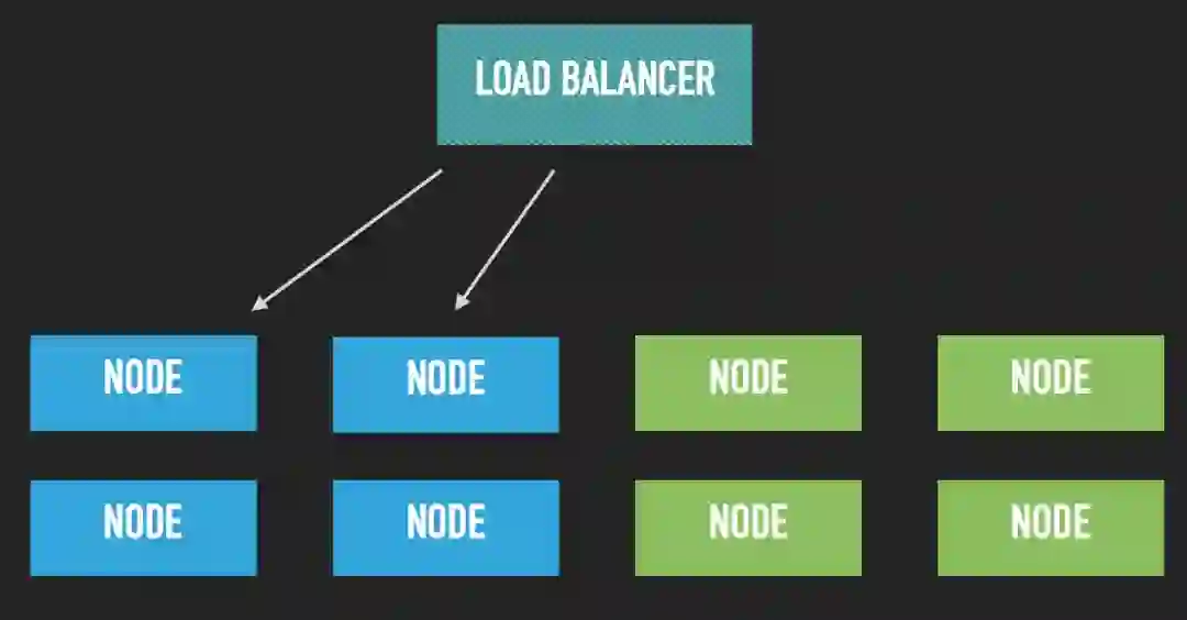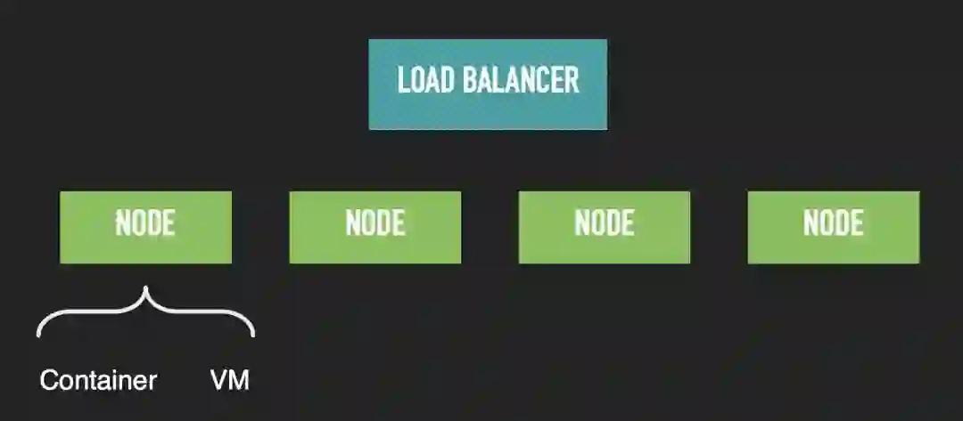 上层是一个负载均衡器(load balancer),下层是多个相同的节点(node)。