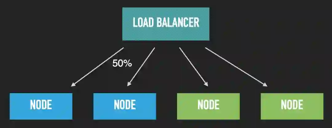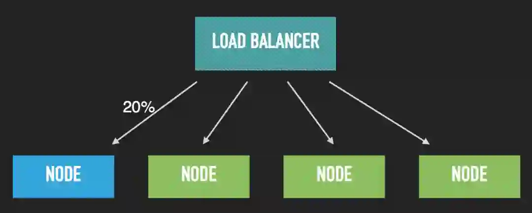 再更新第二个节点,并将包含之前那 20% 的用户的 50% 的用户的请求转发到两个更新过的节点上去。