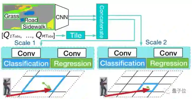 将这些信息提供给模型,让它能学习到人类的活动方式。比如一个人在人行道上比在草地上走得更频繁,并且会倾向于避免撞到汽车。