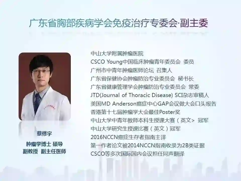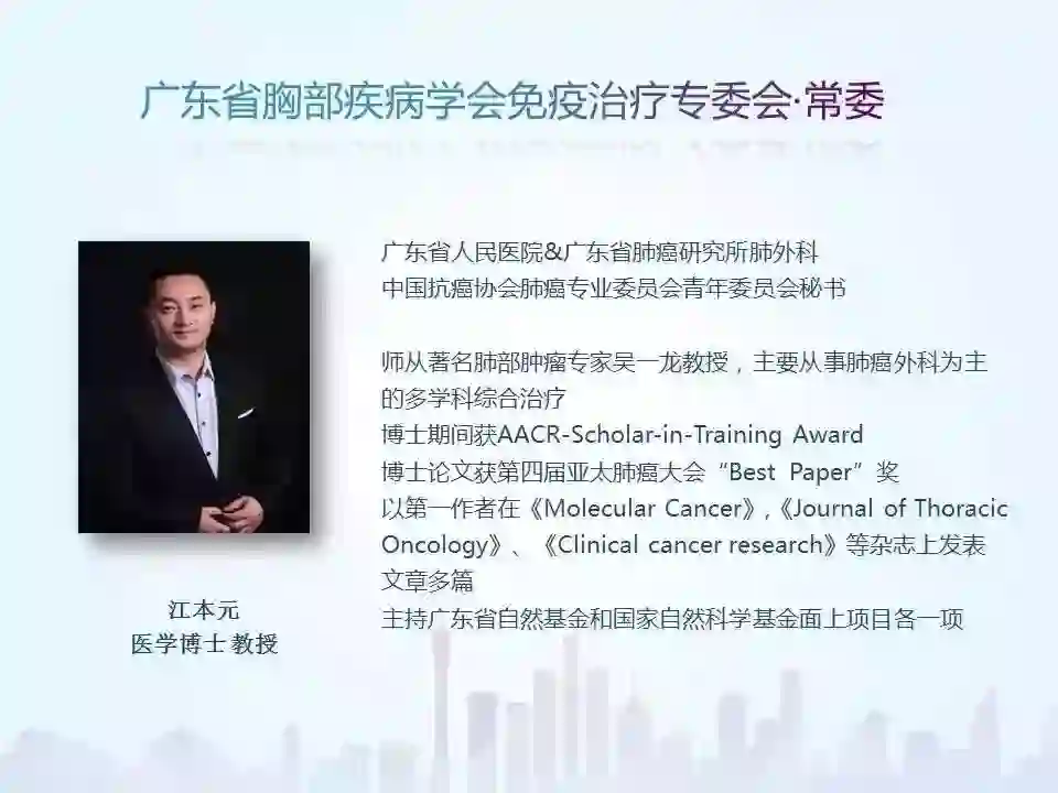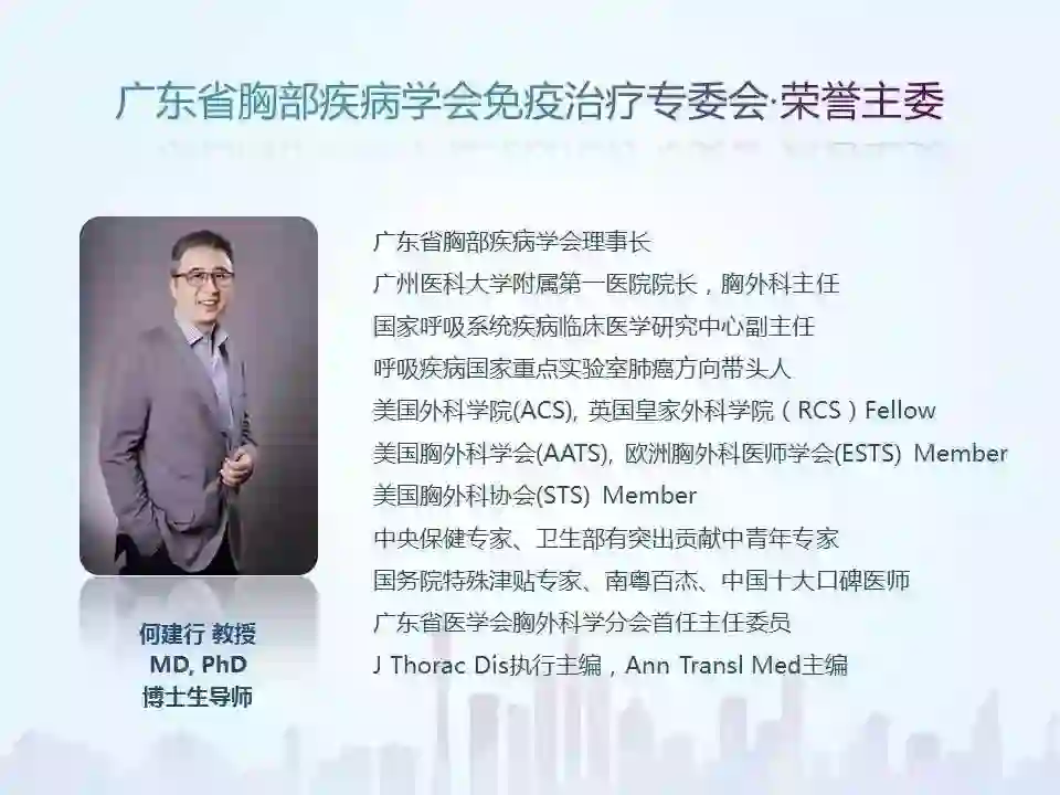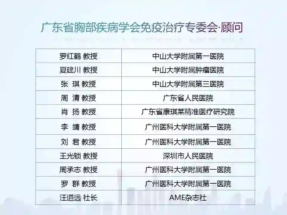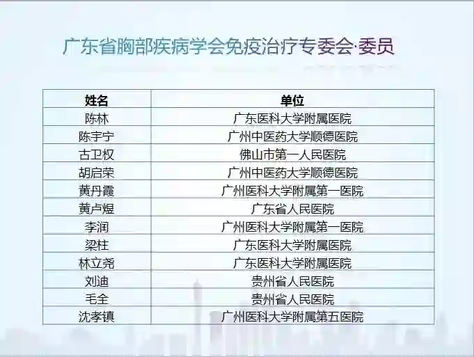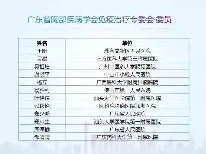 免疫治疗是当今学术界最重要的热点,近年来免疫治疗手段推陈出新,将很多既往极为棘手的疾病尤其是癌症的治疗效果大大提高,但同时也引发很多未知的问题。在广东省胸部疾病学会会长何建行教授大力支持下,广东省胸部疾病学会免疫治疗专业委员会应运而生,其指导思想是,崭新的领域更需要新生的力量,在众多领军人物的指导下,召集学界中坚骨干力量,以组织化的平台共同探讨免疫治疗的临床实践,研发前沿技术,推动免疫治疗领域的进步。