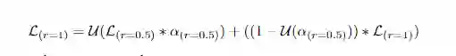 在训练过程中,给定的输入图像按因子r进行缩放,其中r= 0.5表示向下采样按因子2进行,r= 2.0表示向上采样按因子2进行,r= 1表示不进行操作。对于训练过程,选择r= 0.5和r= 1.0。因此,对于两种尺度的训练和推断,以U为双线性上采样操作,将∗和+分别作为像素级的乘法和加法,方程可以形式化为: