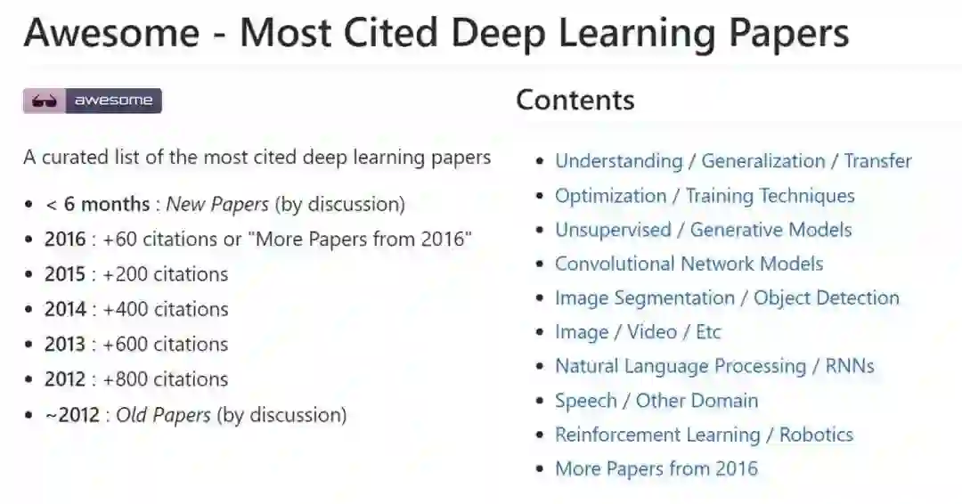 这是来自于terryum整理的一份自2012年起被引用最多数量的深度学习论文列表。