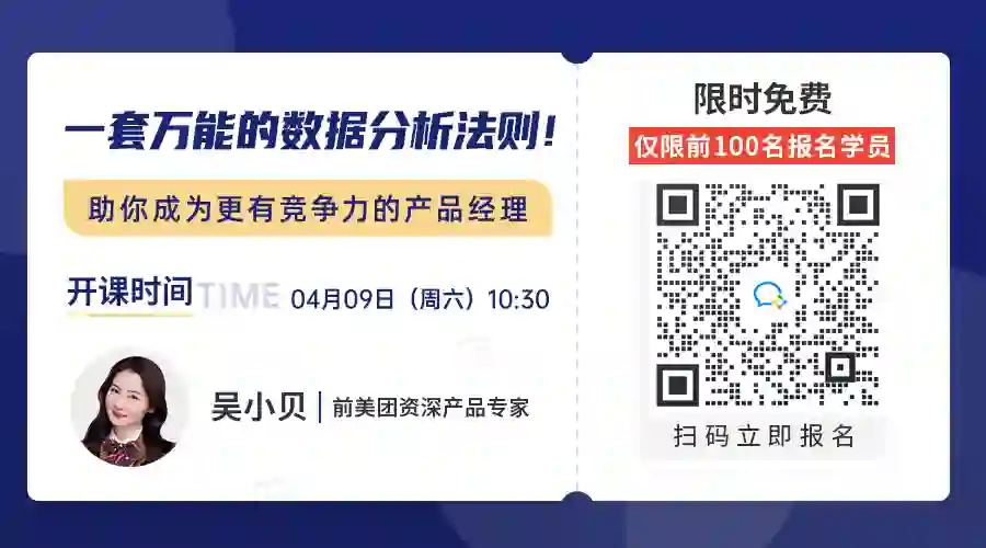 4月9日(周六)上午10:30,前美团资深产品专家@小贝老师,将与你分享一整套万能数据分析流程!