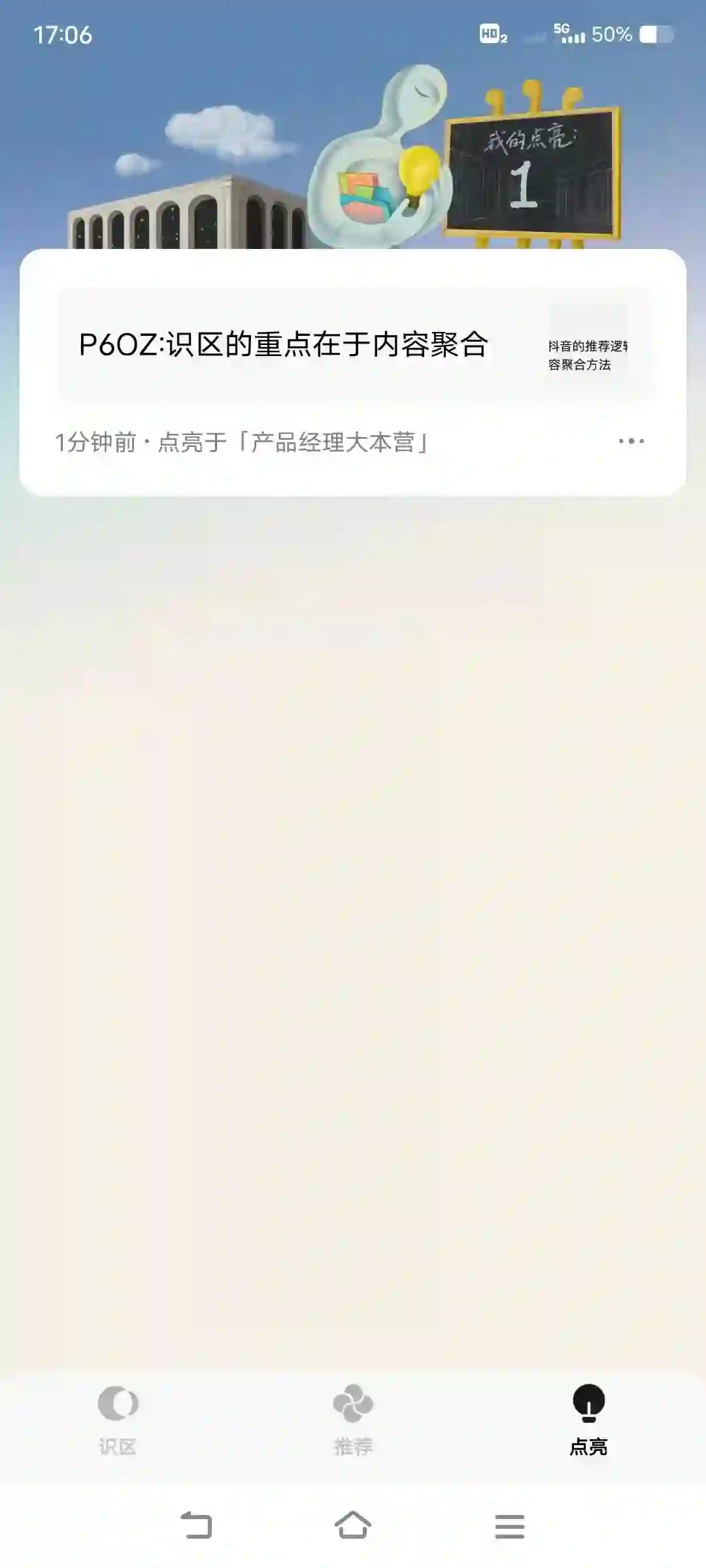 识区的界面也比较简洁,主要由三个部分组成:识区、推荐、点亮。