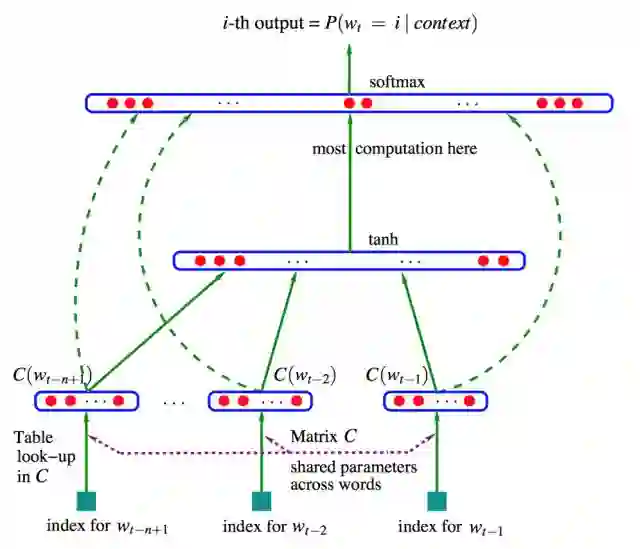 NNLM中以前馈神经网络语言模型最为经典,具体内容可参考 Bengio 2003年发表在JMLR上的论文: