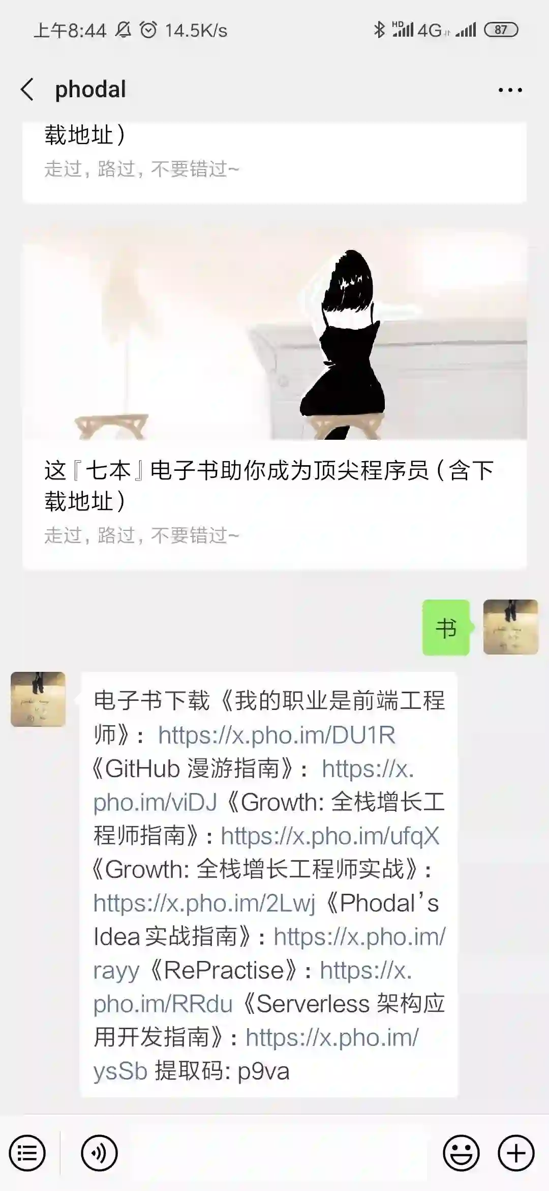 然后回复『书』或者『电子书』,即可获得下载地址。如下图所示: