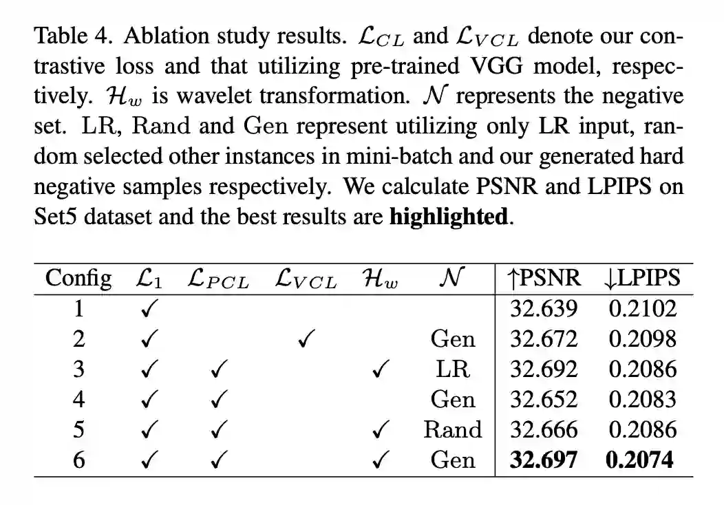 进一步,区别于现有方法采用额外预训练特征提取网络(例如预训练的 VGG),文章利用轻便且任务友好的特征提取网络:SR 网络的鉴别器,将正/负/锚点样本嵌入至对比损失定义的特征空间。对于锚点样本,对比损失将使它原理负样本,靠近正样本。由于该特征提取网络继承自 SR 网络的鉴别器,该鉴别将超分图像与高分辨率图像进行区分,因此嵌入的特征对图像退化十分敏感。故而超分图像可以很好的与负样本区分开同时靠近正样本。