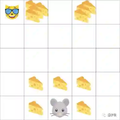 把智能体想成一只小老鼠,对手是只猫。它的目标就是在被猫吃掉之前,吃到最多的奶酪。