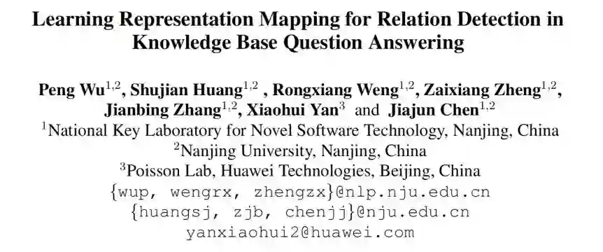 关系检测是包括知识库问答在内的许多自然语言过程应用的核心步骤。目前能得到较高的准确度,是因为关系已在训练数据中。当应对未出现过的关系时,性能将迅速下降。造成这一问题的主要原因是未出现关系的表示形式缺失。为此,本文提出了一种简单的映射方法——表示适配器(representation adapter),该方法基于先前学习的关系嵌入来学习已出现和未出现关系的表示映射。利用对偶目标和重构目标来提高映射性能。重新组织了 SimpleQuestion 数据集来揭示和评估未出现关系的检测问题。实验表明,本文方法要优于当前的一些方法。