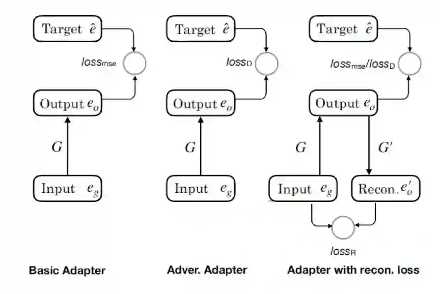 2、提出了一种映射机制,称为表示适配器,或者简称为适配器,用以将学习到的表示合并到关系检测模型中。从适配器非平凡训练的简单均方误差损失入手,提出将对抗性和重构目标结合起来,以改进训练过程。