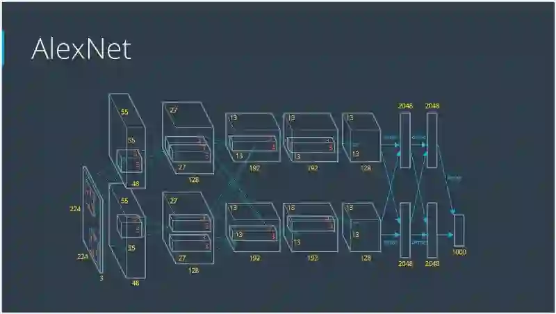 在硬件要求方面,Alex在2个Nvidia GTX 580 GPU(超过1000个快速小内核)上使用了非常有效的卷积网络实现。 GPU非常适合矩阵矩阵乘法,并且具有非常高的存储器带宽。 这使他能够在一周内训练网络,并在测试时快速组合10个补丁的结果。 如果我们能够足够快地传达状态,我们可以在多个核心上传播网络。 随着核心变得越来越便宜而数据集越来越大,大型神经网络的改进速度将超过老式的计算机视觉系统。 自AlexNet以来,已有多种新型号使用CNN作为其骨干架构,并在ImageNet中取得了出色的成果:ZFNet(2013),GoogLeNet(2014),VGGNet(2014),ResNet(2015),DenseNet(2016)等。