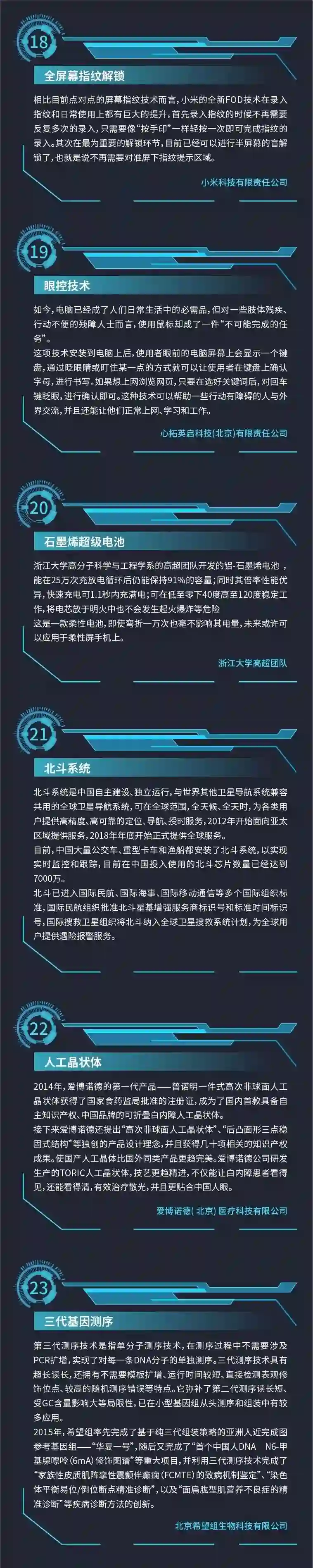 抛开数字,我们也看到越来越多的“黑科技”正在涌现,并且开始商业化。通讯、医疗、交通、国防……无论是打破国外垄断的硬核黑科技,还是有温度有社会价值的走心黑科技,都在以他们的方式实实在在地改变着中国的未来。他们是真正的”中国之光”。