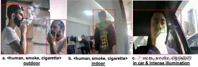 本赛道从实际应用角度出发,提出一个极具实用价值的人-物交互检测数据库。数据库含有约4万张图片,包括多样的光照(强光,弱光,自然光),丰富的场景(室内,室外,车内等),不同的数据源(RGB,红外),和各样的人体姿态。本赛道定义了10种常见的人和物体交互关系,如抽烟,玩手机,打电话,骑车等。在数据库中,每种关系的出现次数都超过400次。