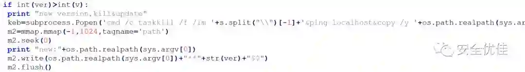 否则判断当前版本是否大于内存映射中的版本,如果大于结束之前版本的进程,当前程序复制过去。