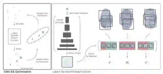 图 2:使用已训练网络的潜变量进化。左图是 CMA-ES 的高级概览,右图展示了潜变量的评估过程。