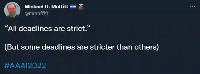 还有人建议去投一些方向更加明确的会议,毕竟 AI 这个范围太大了,如果 AAAI 组委会要照顾各个子领域的中稿均衡性,热门领域的同学难免要当炮灰。