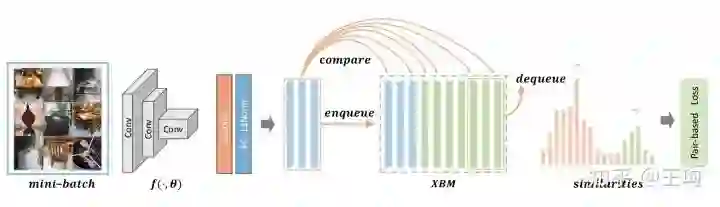 机智勇敢的小朋友们不难发现,XBM可以直接和过去的基于样本对的方法结合,只需要把原来的mini-batch内的样本对换成当前mini-batch和XBM的特征构成的样本对就可以了。所以,我们通过XBM这种存储特征的机制,让不同mini-batch跨越时空,再续前缘,成功配对。