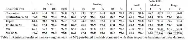 1. 本文的XBM,记住过去的特征,使得模型的训练不再仅仅依靠当前mini-batch的样本,而是可以跨越时空,进行样本配对。从而用极小的代价,提供巨量的样本对,为pair-based的深度度量学习方法插上了腾飞的翅膀。这种提升难例挖掘的方式,也是突破了过去的难例挖掘的两个套路:加权和聚类。方法也是更加直接暴力,效果拔群,我觉得这种做法命中了深度度量学习的要害。