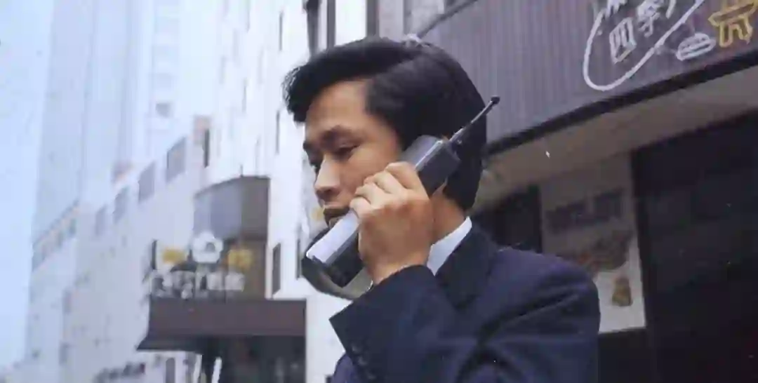 曾经一个“万元户”的标配拥有大哥大,并从包里露出天线;