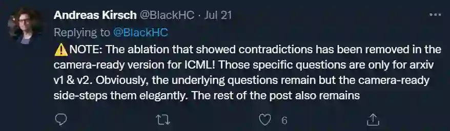 另外,值得注意的是,Andreas Kirsch 表示,能够显示这些矛盾的消融实验在提交给 ICML 的 camera-ready 版本中已经被移除,目前仅能从 arxiv 的第一版和第二版中看到。他认为,作者在给 ICML 的 camera-ready 版本中巧妙地回避了这些问题。