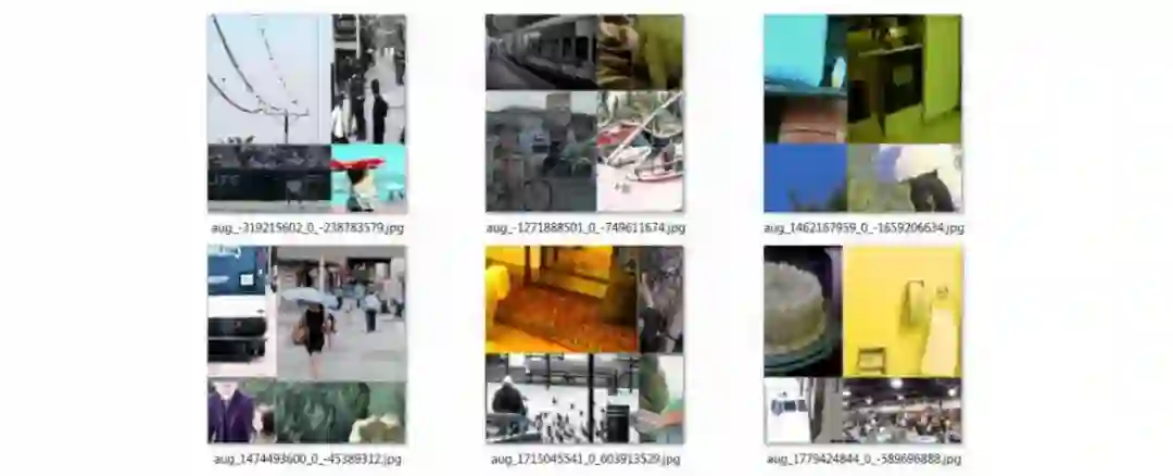 Mosaic 这种数据增强方法是将 4 张训练图像组合成一张来进行训练(而非 CutMix 中的 2 张)。这让模型在非惯例的环境中能更好地执行目标检测。此外,由于每个 mini-batch 都包含图像的较多变体(4×),因此在估计均值和方差时,对较大 mini-batch 的需求会降低。