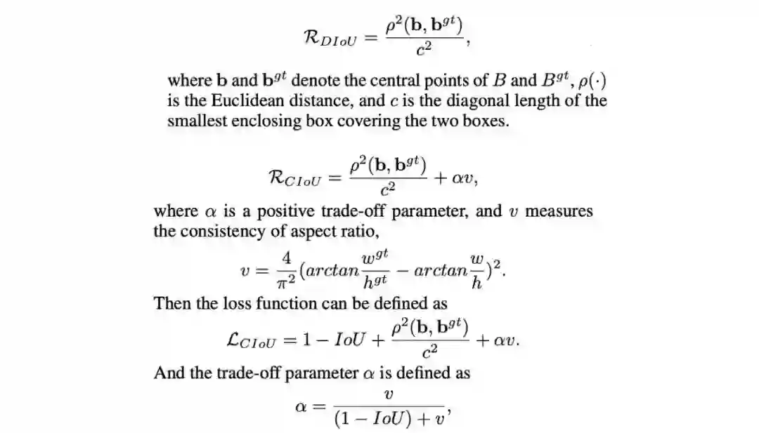 最后,引入 Complete IoU Loss(CIoU)以便: