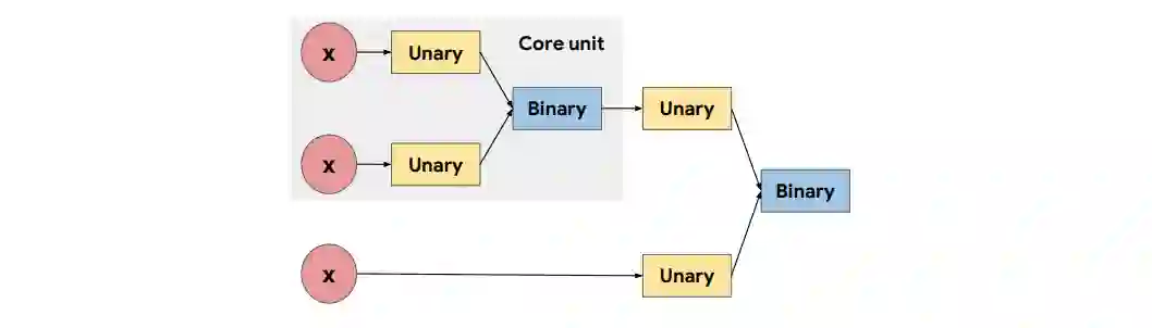 其中一元或二元算子有很多不同的候选函数,比如余弦函数。在选用这些函数时,我们可以随机猜测,然后基于不同的任务(比如分类)和数据集来评估对应模型的表现。最终,我们可以选出能让模型表现最好的激活函数。