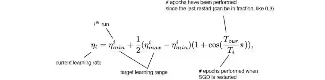 余弦调度会根据一个余弦函数来调整学习率。首先,较大的学习率会以较慢的速度减小。然后在中途时,学习的减小速度会变快,最后学习率的减小速度又会变得很慢。