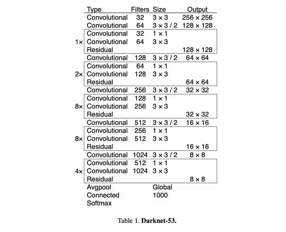 相比于基于 ResNet 的设计,CSPDarknet53 模型的目标检测准确度更高,不过 ResNet 的分类性能更好一些。但是,借助后文将讨论的 Mish 和其它技术,CSPDarknet53 的分类准确度可以得到提升。因此,YOLOv4 最终选择了 CSPDarknet53。